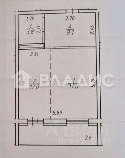 Площадь квартиры 41,9 кв.м. + лоджия 7,2 кв.м. Высокие потолки 2,7 кв.м.