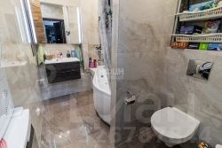 совмещённый санузел оборудован современной дорогой сантехникой и украшен изысканным керамическим покрытием;