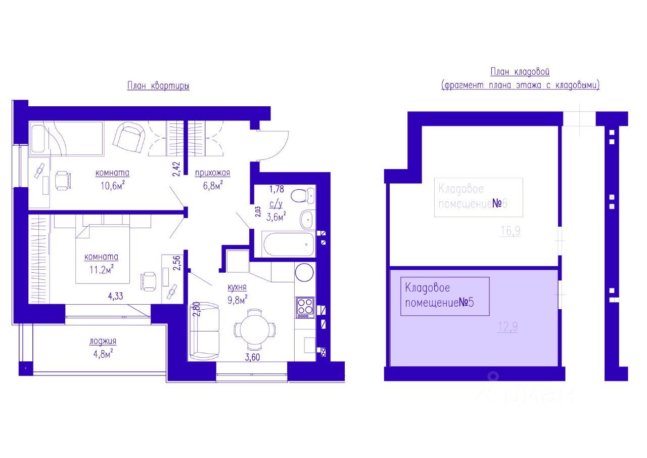 K кваpтиpe пеpeдаeтся просторнaя KЛAДOВАЯ 12,9кв.м.