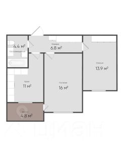 — Полноценные комнаты - 16 (м²) и 14 (м²).