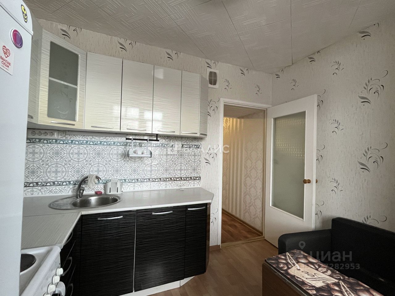 Кухня оборудована всей необходимой мебелью и техникой, в комнате останется шкаф-купе, что позволит новому владельцу обустроить комнату под себя.
