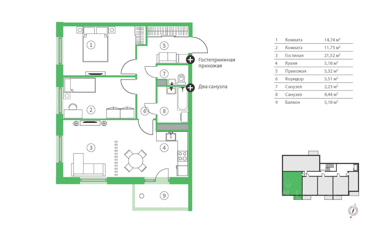Продаётся 3-комнатная квартира в строящемся доме (5.5), срок сдачи: IV-кв. 2026, общей площадью 75.85 кв.м., на 6 этаже. Новый жилой комплекс "Сампо" от застройщика "Стройинвест КСМ" органично сочетает городской комфорт и очарование жизни загородом. Здесь каждый сможет найти то, что ему необходимо: