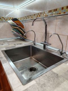 Полностью оборудованная кухня: посудомоечная машина, варочная поверхность, духовой шкаф, холодильник, стиральная машина система фильтрации воды (3 различных фильтра, мембрана обратного осмоса, а также насыщение воды минеральными веществами).
