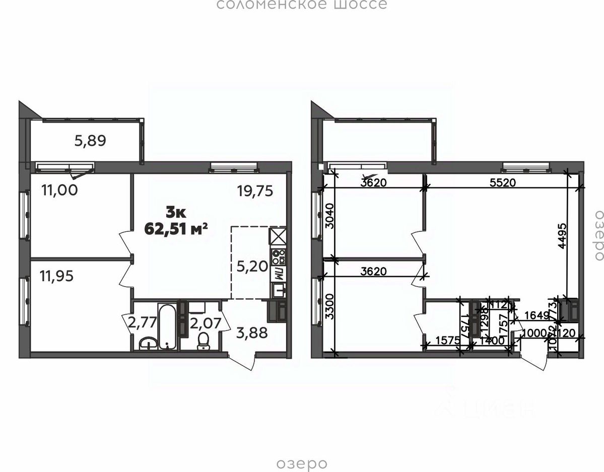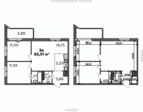 Продаётся 3-комнатная квартира в строящемся доме (Дом 19 (2 этап)), срок сдачи: I-кв. 2029, общей площадью 62.51 кв.м., на 3 этаже.