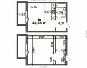 Продаётся 1-комнатная квартира в строящемся доме (Дом 19 (2 этап)), срок сдачи: I-кв. 2029, общей площадью 34.55 кв.м., на 5 этаже.