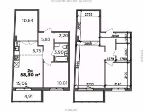 Продаётся 2-комнатная квартира в строящемся доме (Дом 19 (2 этап)), срок сдачи: I-кв. 2029, общей площадью 58.3 кв.м., на 6 этаже.
