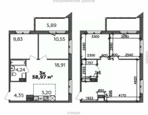 Продаётся 3-комнатная квартира в строящемся доме (Дом 19 (2 этап)), срок сдачи: I-кв. 2029, общей площадью 58.97 кв.м., на 6 этаже.