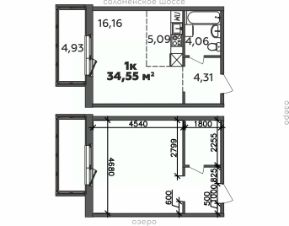 Продаётся 1-комнатная квартира в строящемся доме (Дом 19 (2 этап)), срок сдачи: I-кв. 2029, общей площадью 34.55 кв.м., на 9 этаже.
