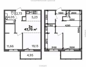 Продаётся 2-комнатная квартира в строящемся доме (Дом 19 (2 этап)), срок сдачи: I-кв. 2029, общей площадью 47.75 кв.м., на 2 этаже.