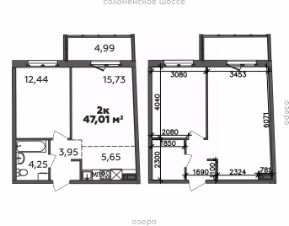 Продаётся 2-комнатная квартира в строящемся доме (Дом 19 (2 этап)), срок сдачи: I-кв. 2029, общей площадью 47.01 кв.м., на 9 этаже.