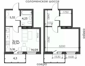 Продаётся 1-комнатная квартира в строящемся доме (Дом 10), срок сдачи: I-кв. 2028, общей площадью 33.1 кв.м., на 3 этаже.