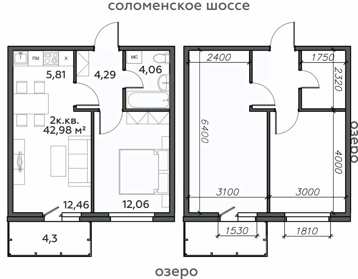 Продаётся 2-комнатная квартира в строящемся доме (Дом 10), срок сдачи: I-кв. 2028, общей площадью 42.98 кв.м., на 3 этаже.