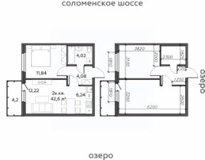 Продаётся 2-комнатная квартира в строящемся доме (Дом 10), срок сдачи: I-кв. 2028, общей площадью 42.6 кв.м., на 3 этаже.