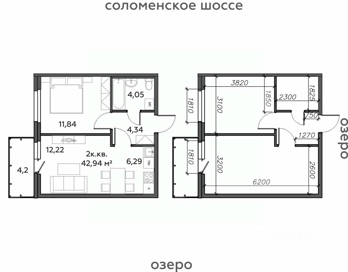 Продаётся 2-комнатная квартира в строящемся доме (Дом 10), срок сдачи: I-кв. 2028, общей площадью 42.94 кв.м., на 5 этаже.