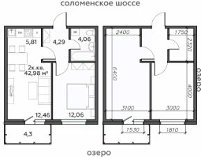 Продаётся 2-комнатная квартира в строящемся доме (Дом 10), срок сдачи: I-кв. 2028, общей площадью 42.98 кв.м., на 6 этаже.