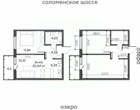Продаётся 2-комнатная квартира в строящемся доме (Дом 10), срок сдачи: I-кв. 2028, общей площадью 42.94 кв.м., на 14 этаже.