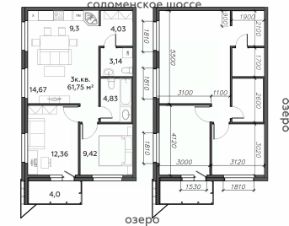 Продаётся 3-комнатная квартира в строящемся доме (Дом 10), срок сдачи: I-кв. 2028, общей площадью 61.75 кв.м., на 21 этаже.