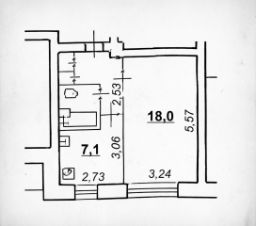 - Планировка: всё очень удобно и комфортно. Большая жилая комната 18 кв. м, полноценная 7метровая кухня, совмещенный санузел. К сожалению, нет балкона.