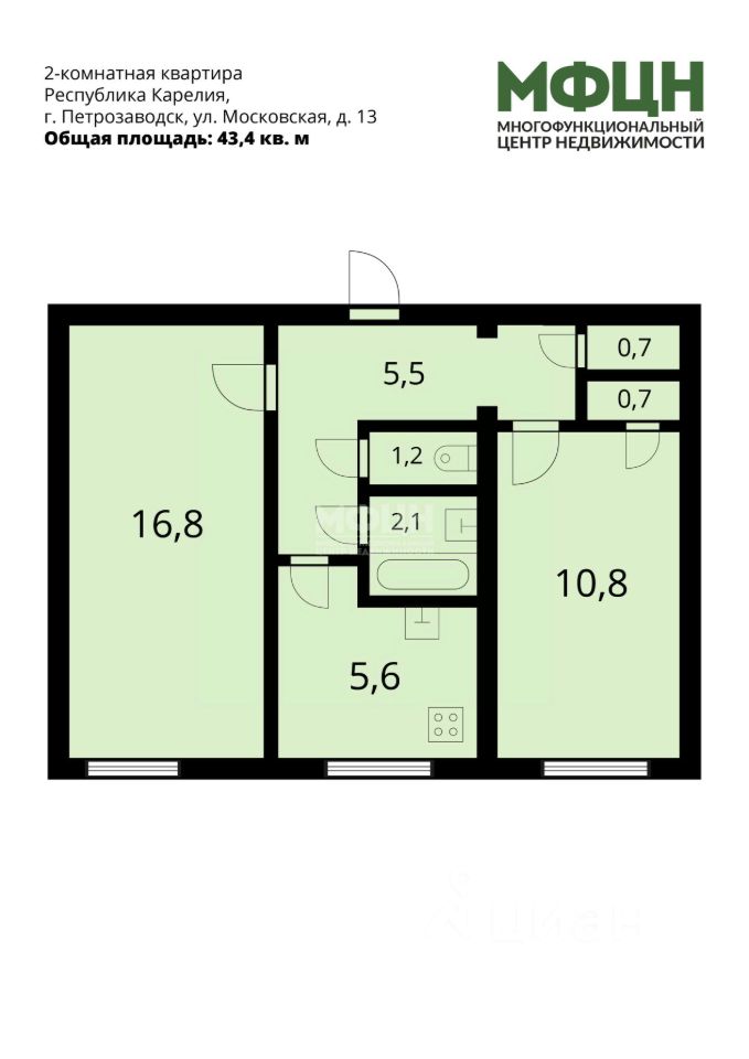 К покупке предлагается 2 - комнатная квартира, расположенная на 1-м этаже 5 - этажного дома, находящаяся по адресу: город Петрозаводск, ул. Московская, дом 13.