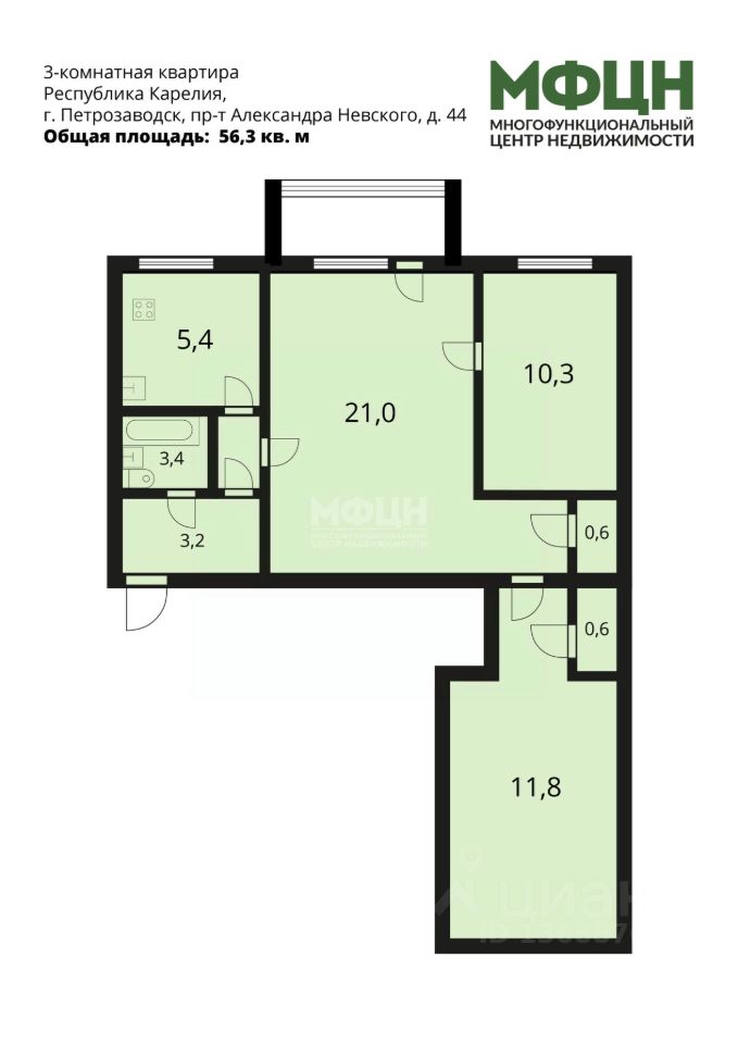 К покупке предлагается 3 - комнатная квартира, расположенная на 2-м этаже 5 - этажного дома, находящаяся по адресу: Петрозаводск, проспект Александра Невского, дом 44.