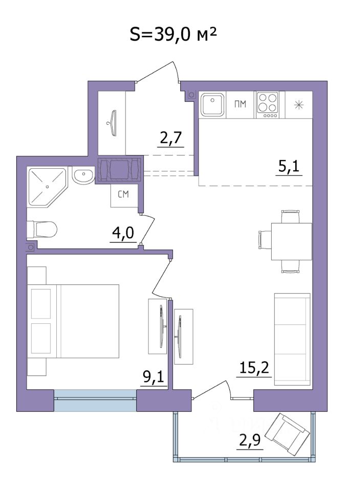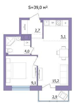 Продаётся 2-комнатная квартира в строящемся доме (Дом 3), срок сдачи: II-кв. 2026, общей площадью 39 кв.м., на 10 этаже.