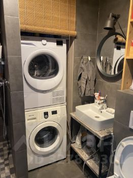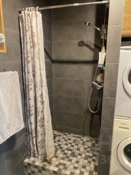 Санузел полностью выполнен керамогранитом, теплый пол. Душ,место под стиральную и сушильную машины, есть бойлер на время отключения горячей воды. Вся сантехника в квартире - финский Oras.
