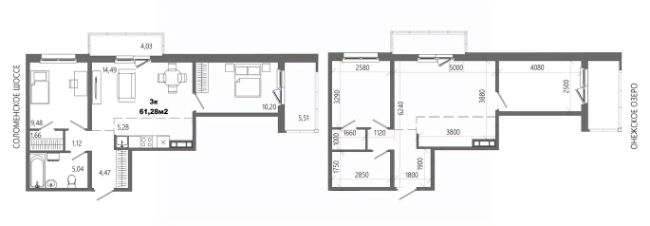 Продаётся 3-комнатная квартира в строящемся доме (Дом 8), срок сдачи: II-кв. 2028, общей площадью 61.28 кв.м., на 2 этаже.