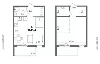 Продаётся 1-комнатная квартира в строящемся доме (Дом 8), срок сдачи: II-кв. 2028, общей площадью 34.41 кв.м., на 4 этаже.