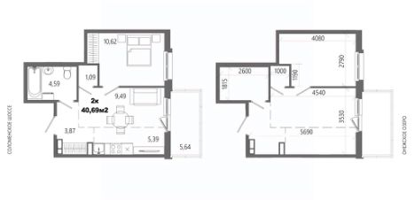 Продаётся 2-комнатная квартира в строящемся доме (Дом 8), срок сдачи: II-кв. 2028, общей площадью 40.69 кв.м., на 9 этаже.