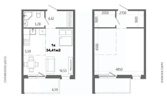 Продаётся 1-комнатная квартира в строящемся доме (Дом 8), срок сдачи: II-кв. 2028, общей площадью 34.41 кв.м., на 9 этаже.