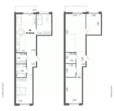 Продаётся 3-комнатная квартира в строящемся доме (Дом 8), срок сдачи: II-кв. 2028, общей площадью 61.91 кв.м., на 9 этаже.
