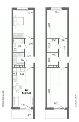 Продаётся 2-комнатная квартира в строящемся доме (Дом 8), срок сдачи: II-кв. 2028, общей площадью 54.01 кв.м., на 2 этаже.