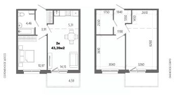 Продаётся 2-комнатная квартира в строящемся доме (Дом 8), срок сдачи: II-кв. 2028, общей площадью 43.39 кв.м., на 8 этаже.