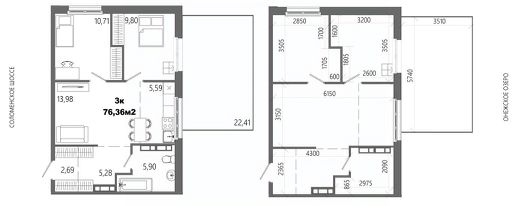 Продаётся 3-комнатная квартира в строящемся доме (Дом 8), срок сдачи: II-кв. 2028, общей площадью 76.36 кв.м., на 10 этаже.