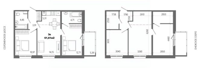 Продаётся 3-комнатная квартира в строящемся доме (Дом 8), срок сдачи: II-кв. 2028, общей площадью 61.61 кв.м., на 11 этаже.