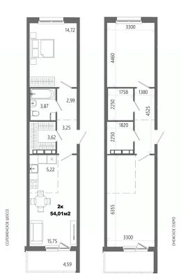 Продаётся 2-комнатная квартира в строящемся доме (Дом 8), срок сдачи: II-кв. 2028, общей площадью 54.01 кв.м., на 13 этаже.
