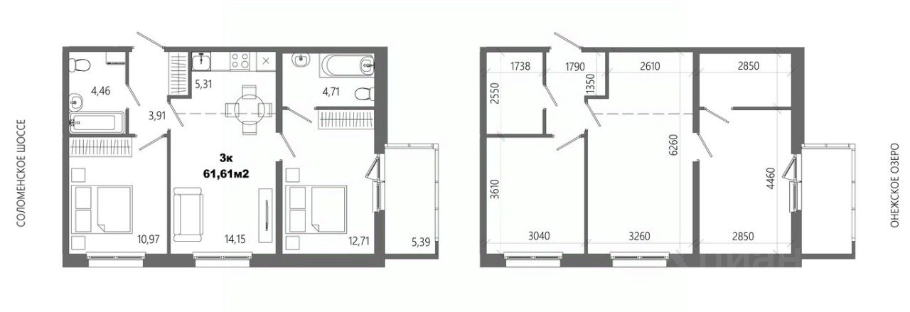Продаётся 3-комнатная квартира в строящемся доме (Дом 8), срок сдачи: II-кв. 2028, общей площадью 61.61 кв.м., на 14 этаже.