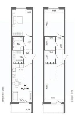 Продаётся 2-комнатная квартира в строящемся доме (Дом 8), срок сдачи: II-кв. 2028, общей площадью 54.01 кв.м., на 14 этаже.