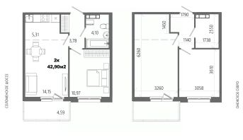 Продаётся 2-комнатная квартира в строящемся доме (Дом 8), срок сдачи: II-кв. 2028, общей площадью 42.9 кв.м., на 3 этаже.