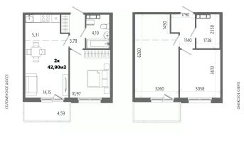 Продаётся 2-комнатная квартира в строящемся доме (Дом 8), срок сдачи: II-кв. 2028, общей площадью 42.9 кв.м., на 8 этаже.