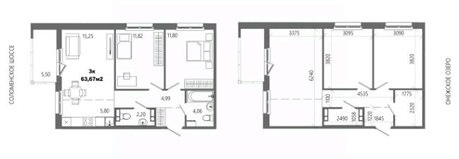 Продаётся 3-комнатная квартира в строящемся доме (Дом 8), срок сдачи: II-кв. 2028, общей площадью 63.67 кв.м., на 8 этаже.