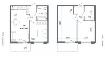 Продаётся 2-комнатная квартира в строящемся доме (Дом 8), срок сдачи: II-кв. 2028, общей площадью 43.23 кв.м., на 11 этаже.
