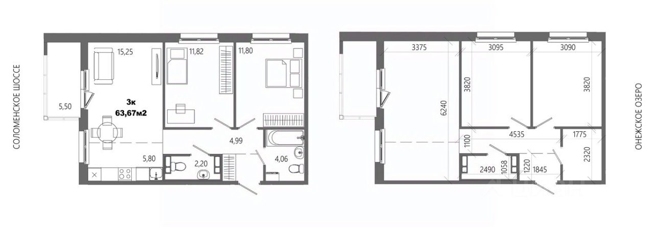 Продаётся 3-комнатная квартира в строящемся доме (Дом 8), срок сдачи: II-кв. 2028, общей площадью 63.67 кв.м., на 11 этаже.