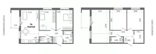 Продаётся 3-комнатная квартира в строящемся доме (Дом 8), срок сдачи: II-кв. 2028, общей площадью 63.67 кв.м., на 12 этаже.