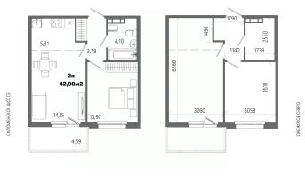 Продаётся 2-комнатная квартира в строящемся доме (Дом 8), срок сдачи: II-кв. 2028, общей площадью 42.9 кв.м., на 13 этаже.