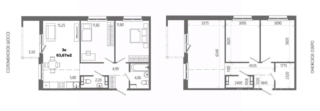 Продаётся 3-комнатная квартира в строящемся доме (Дом 8), срок сдачи: II-кв. 2028, общей площадью 63.67 кв.м., на 14 этаже.