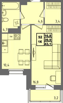 Общая площадь43,1 м²