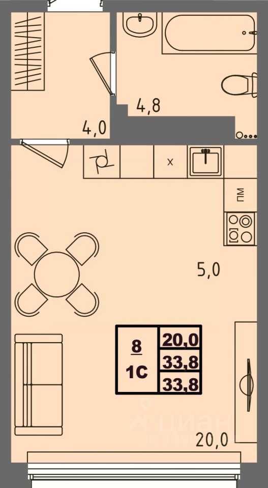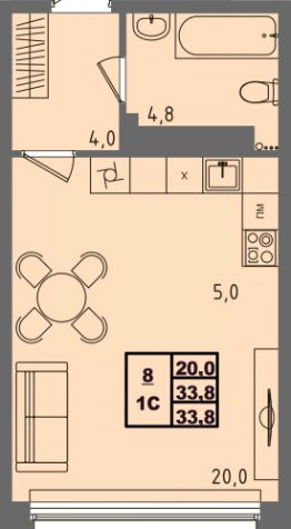 Общая площадь33,8 м²