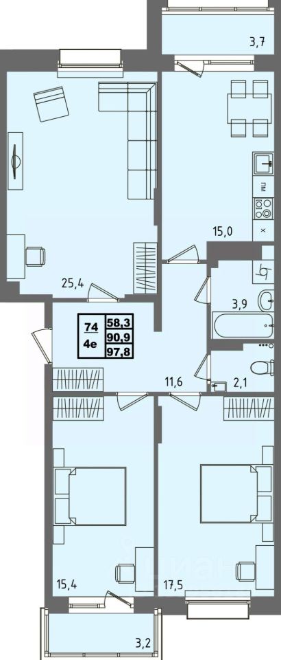 Общая площадь97,8 м²