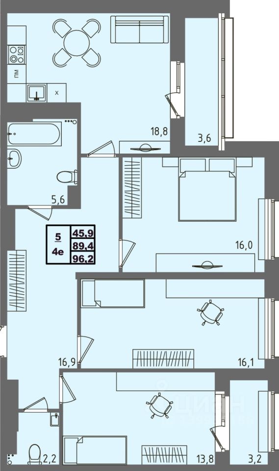 Общая площадь96,2 м²
